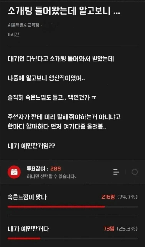 대기업 다닌다고 소개팅 들어와서 받았는데 알고보니