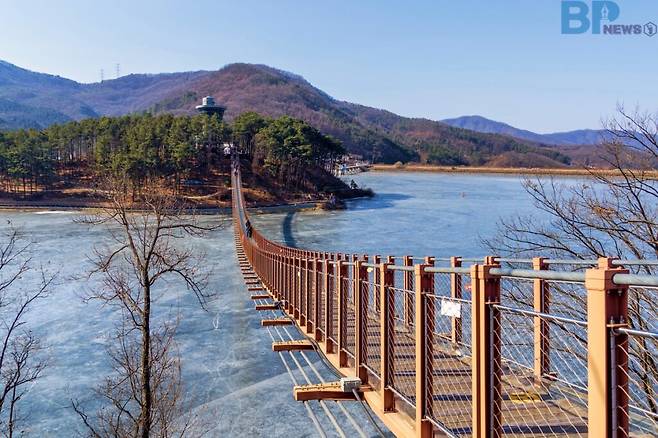 눈앞에 펼쳐진 호수 위로 다리가 ‘출렁’이며 움직인다. 흔들림은 순간적으로 아찔하지만 곧이어 호수 위를 걷고 있다는 사실에 묘한 해방감을 느끼게 된다. 기대보다 훨씬 길다.