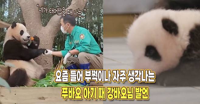 푸바오 탄생을 진심으로 기뻐한 강바오는 직접 손녀딸을 끌어안고 "너 처음에 태어났을 때 기분이 어땠는지 알아?! 할부지 완전 구름타고 날아가는 줄 알았잖아"라고 말했습니다.