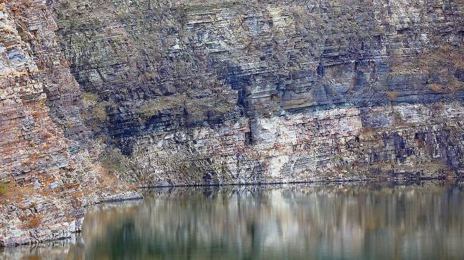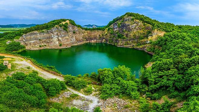경기도 안산 대부도에 위치한 ‘대부광산퇴적암층’은 공룡 발자국 화석과 독특한 암석 지형, 푸른 호수가 어우러진 특별한 자연 공간이다.