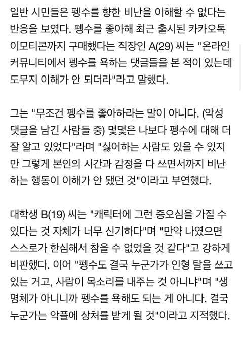 대세 캐릭터` 펭수에게 쏟아지는 악플 "고작 인형탈 쓴 XX가…"
