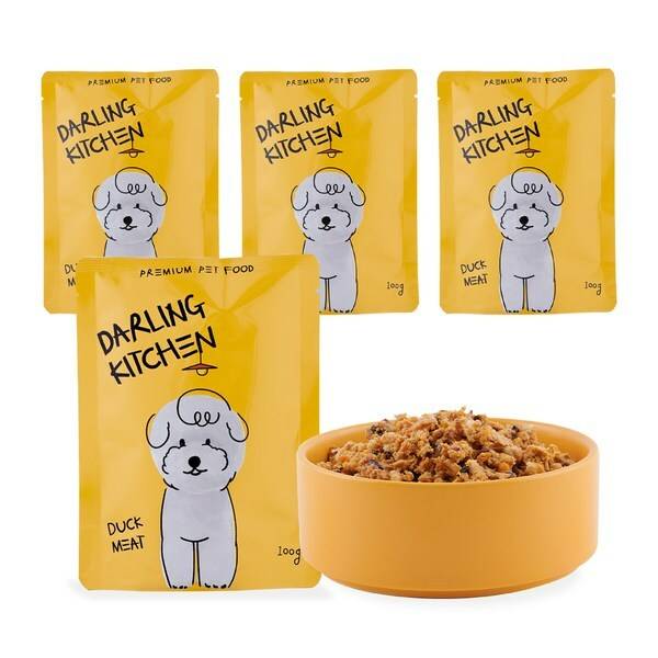 멸균해 파우치에 포장한 화식으로, 상온 보관이 가능합니다. 따로 해동할 필요도 없어 급여가 매우 간편해요. 위 제품에 사용된 육류는 오리고기입니다.