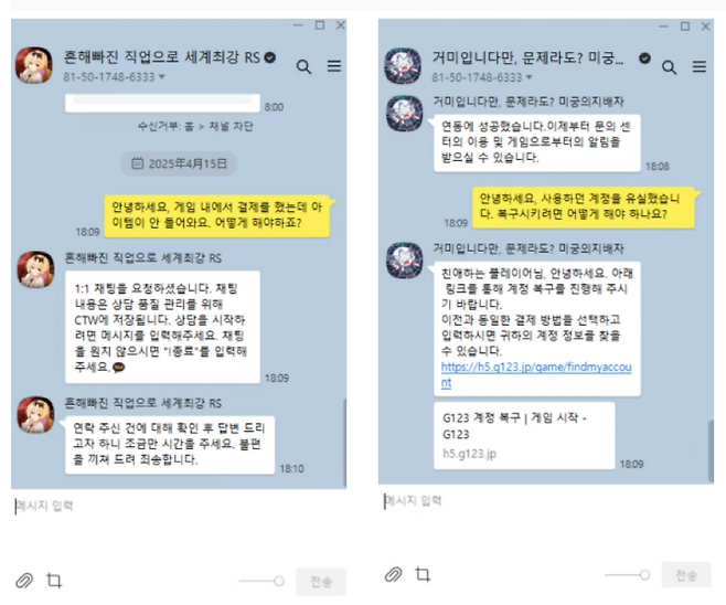 ・결제 이력 기반 복구: SNS 계정 연동 없이 게임을 이용 중이더라도, 단 1원이라도 결제한 이력이 있다면 기기 변경이나 캐시 삭제 후에도 데이터 복구가 가능합니다.
