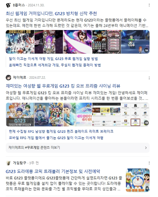 [G123 베스트 플레이 게임 목록]