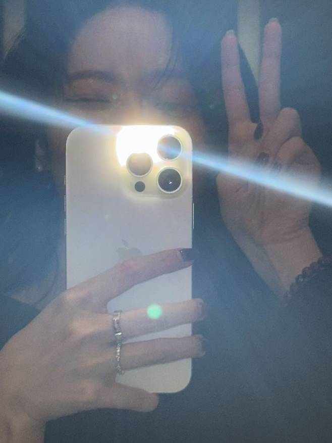 특히 옆으로 길게 떨어지는 프런트 섹션은 얼굴 윤곽을 자연스럽게 감싸면서도, 살짝 비껴 내려온 앞머리가 여리여리한 분위기를 완성해주었어요. 머리를 귀 뒤로 빼거나 살짝 헝클어진 듯 내려오게 연출한 모습이, 꾸민 듯 안 꾸민 듯한 ‘윈터 특유의 무드’를 잘 보여주고 있었어요.
