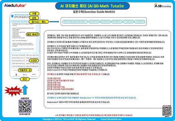 질문수학AI튜터©는 수학 개념을 효과적으로 학습할 수 있도록 도와주는 맞춤형 학습 도구로, 다음과 같은 방식으로 사용될 수 있다.