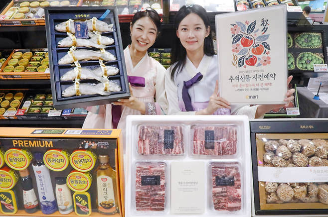 * 이마트는 행사 카드로 30만 원 이상 결제 시 15%를 상품권으로 돌려주는 파격 혜택을 준비했습니다. 과일 세트는 최대 35% 할인, 한우 갈비 세트도 20% 저렴하게 선보입니다.