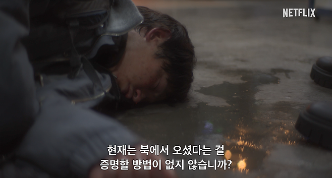 마지막 희망인 ‘난민’ 지위를 인정받기 위해 침착하게 자신의 이름과 국적을 말하는 ‘로기완’의 모습과, 여기까지 오기 위해 목숨을 걸고 뛰었던 순간이 교차되면서 그의 절박한 삶의 단면을 보여준다. 그러나 북에서 왔다는 걸 증명할 방법이 없다는 냉정한 답변 앞에서, 더 이상 버티기 힘든 듯 차가운 바닥에 쓰러진 모습은 안타까움을 자아낸다.