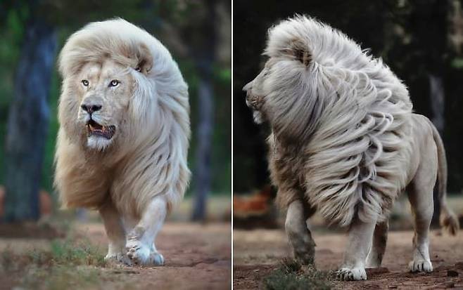 실제 공개된 사진 속에는 불어오는 바람에 새하얀 갈기를 흩날리면서 걸어오는 화이트 라이온 모야의 카리스마 포스가 담겨 있었죠.
