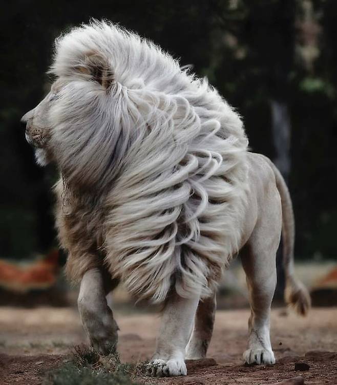 바람에 자신의 새하얀 갈기를 흩날리면서 터벅터벅 걸어오는 화이트 라이온이 있어 입을 떡 벌어지게 합니다.