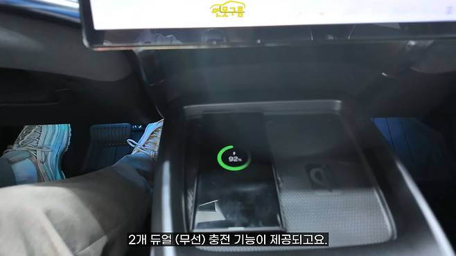 충전기는 2개가 제공되며, 듀얼 무선 충전 기능이 하단에 위치해 있어 매우 편리합니다. 충전 중 메시지가 와도 쉽게 확인할 수 있고, 내릴 때도 눈에 잘 띄어 놓고 내리는 일이 없을 것 같았습니다.