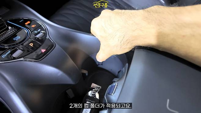 암레스트 콘솔은 기본적인 형태이지만, 내부가 고무 재질로 마감되어 작은 컵을 넣어도 덜컹거리는 소리를 줄여주는 섬세한 배려가 돋보였습니다.