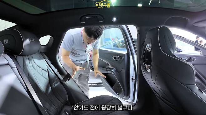 BYD Seal의 2열에 앉아보니, 앉기 전부터 공간이 매우 넓다는 느낌을 받았습니다. 좌판 길이는 대략 50cm 정도로 넉넉하여 제네시스 차량과 같은 편안함을 제공합니다.