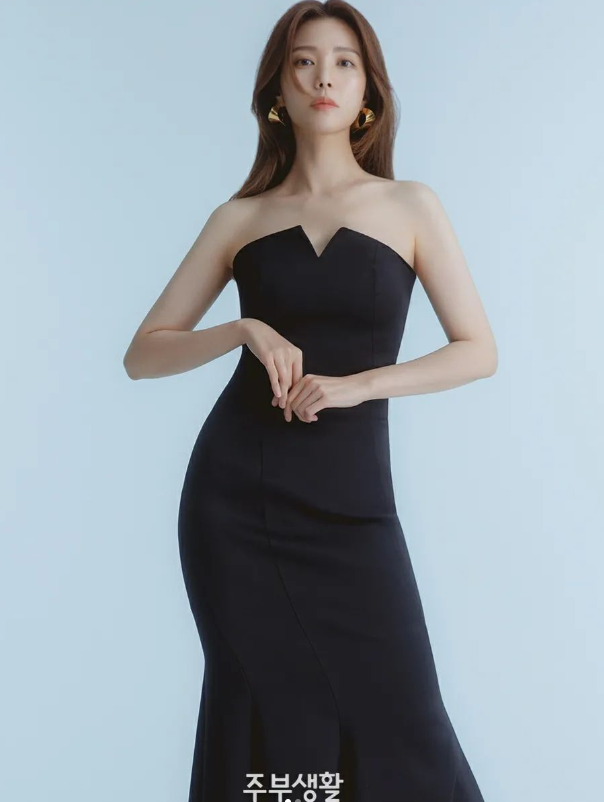 정시아는 디테일이 없이 고급스러운 슬림핏 롱드레스로 우아하고 고급스러운 자태를 뽐냈다.