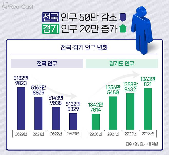 전국 인구수 ‘뚝뚝’…경기 인구는 ‘쑥쑥’ 증가