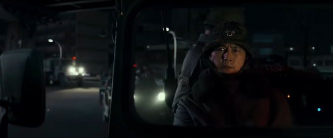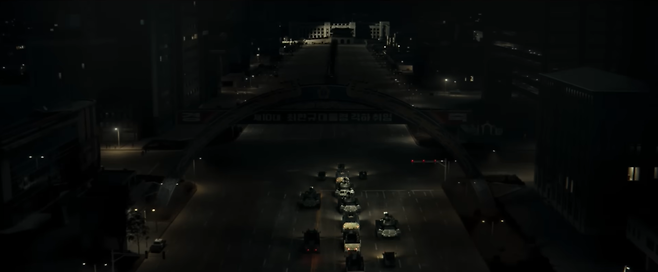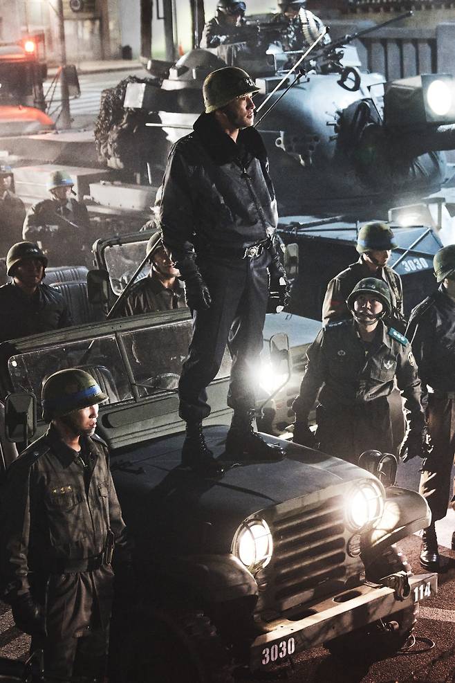 영화에는 상징적인 몇몇 장면이 등장한다. 이태신(정우성) 수도경비사령관이 전두광(황정민) 보안사령관과의 마지막 대치를 위해 광화문을 지날 때 이순신 장군을 바라보는 장면도 그중 하나다. 이를 포함해 영화에는 이순신 장군의 동상이 두차례 등장한다.
