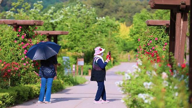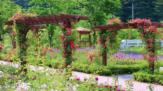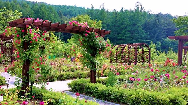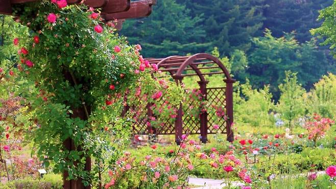 이 수목원에서 가장 시선을 끄는 장소 중 하나는 6월이 되면 장미가 활짝 피어나는 ‘장미원’이다.