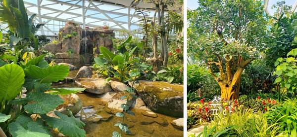 이곳에는 관엽식물, 야자식물, 수생식물 등 다양한 지역에서 사는 나무들을 한자리에서 볼 수 있고, 인공폭포도 시원하게 떨어지는 소리에 시원한 기분까지 느껴보실 수 있는데요.