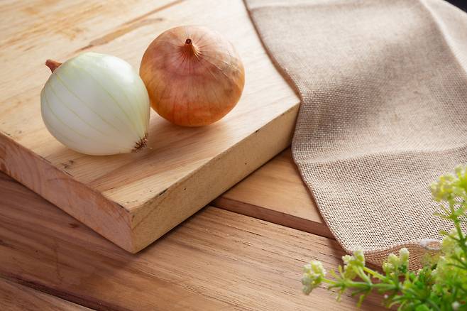 도마 옆에 물에 적신 행주나 키친타월을 놓아두면 양파에서 나오는 매운 성분이 수분 쪽으로 먼저 흡수됩니다.