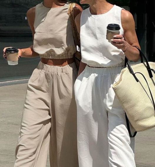 3. 슬리브리스 + 와이드 팬츠 + 미스트형 향수