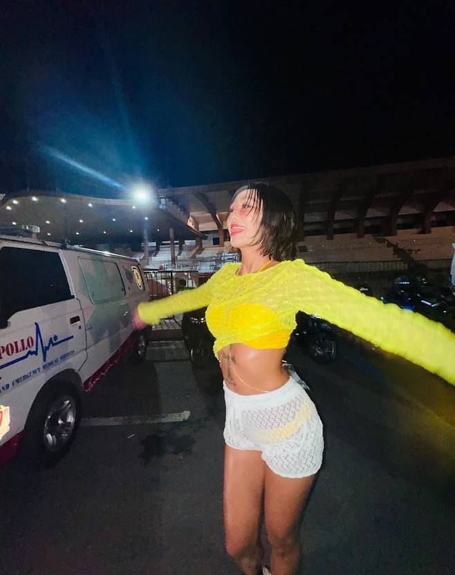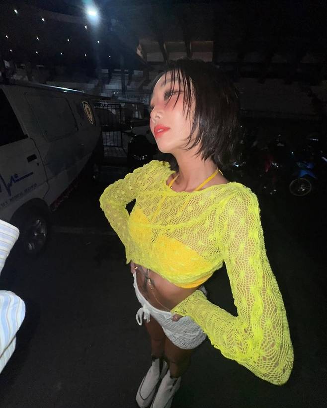 마닐라 해외 공연에서 효린은 밤하늘 아래 조명보다 더 ✨반짝✨였는데요. 형광 노란색 크로쉐탑에 브라탑을 레이어드해서 완벽한 #페스티벌룩 을 완성했어요. 😍 단순한 예쁜 착장이 아니라, 효린만의 🔥넘치는 에너지🔥를 보여주는 스타일이었죠!