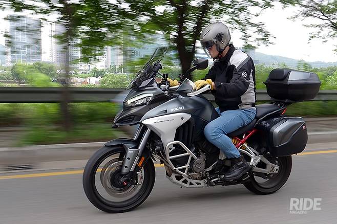 물론 성능이 낮다는 건 데스모세디치 스트라달레 엔진과 비교할 때 그렇다는 것이지, 경쟁 모델과 비교하면 어드벤처로는 상당히 높은 성능을 자랑한다. 여기에 전 영역, 저속에서 고속까지 모두 아우를 수 있는 세팅이 적용된 덕분에 시내에서의 주행도 잦은 변속 없이 소화할 수 있어 편리하다. 기본 제공되는 4개의 주행 모드 중 어반을 선택하면 파워가 훨씬 부드럽게 뿜어지기 때문에 조작으로 인한 스트레스를 받을 일도 없다.