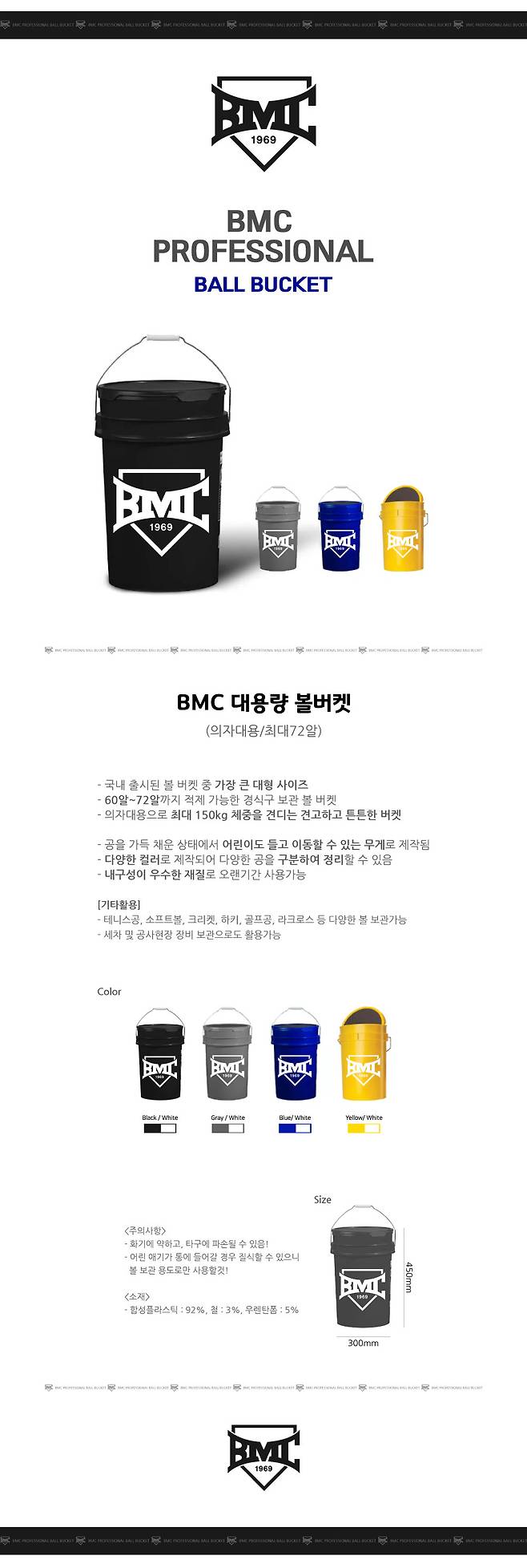 BMC 프로페셔널 대용량 야구공 버켓