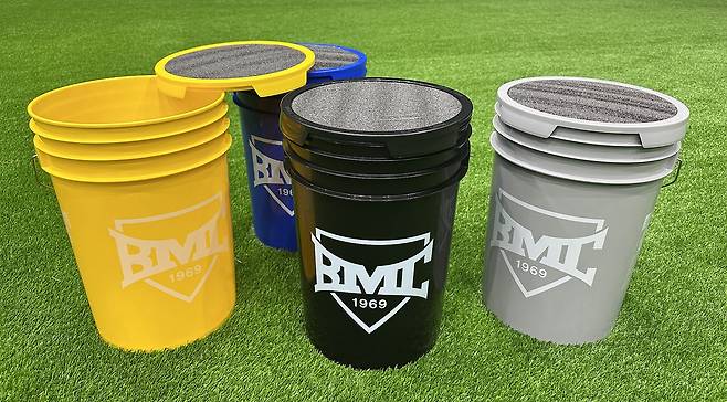 연습 시 필요한 야구공을 넣어 수납할 수 있게 해주는 버켓입니다.