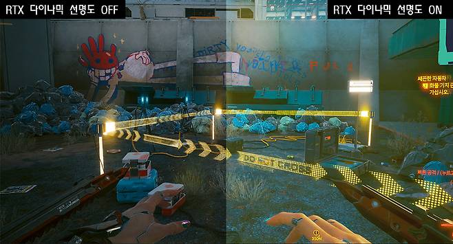 반면 정말 획기적인 기능이 추가되었다. 바로 '게임 필터' 부분이다. 한마디로 게임을 플레이하면서 화면 효과를 실시간으로 적용하는 것인데, RTX 다이나믹 선명도같이 화질 개선에 대한 옵션도 있지만, 흑백으로 전환하거나 레트로풍 필름 스타일 등으로 별도의 로딩 과정 없이 바로 전환할 수 있다. 스마트폰에서 카메라에 다양한 옵션을 주어 촬영하는 것을 게임에 그대로 적용했다고 보면 이해하기 쉽다.
