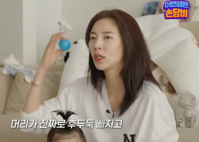 이어 손담비는 "남편이 걱정할 정도로 심각하게 머리가 많이 빠졌다. 샤워를 하면 배수구가 막힐 정도였다"며 "제일 충격적이었던 건 헤어샵에서도 저한테 머리가 휑하다고 하더라. 정수리와 가르마 라인이 심하게 비었다는 이야기를 들었다. 특히 앞머리 라인이 많이 빠져 충격을 받았다"고 당시를 회상했다.