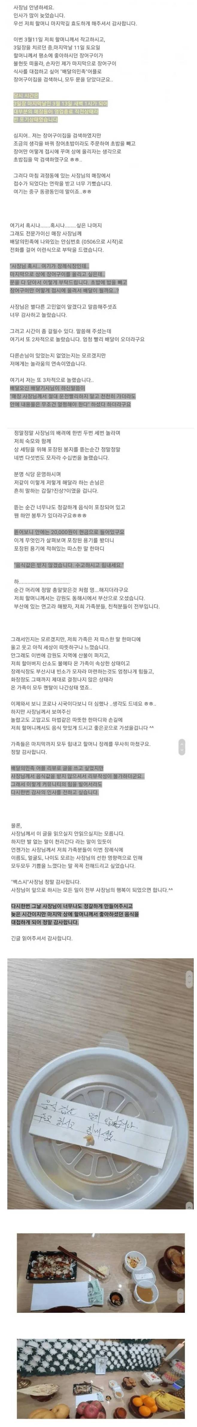 새벽 1시에 장어초밥 시켰더니 무료로 배달해주신 사장님