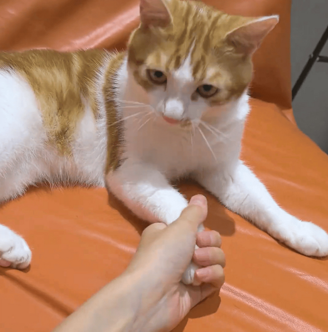 두 사이의 행동은 마치 장난기 가득한 친구들의 모습 같았습니다. 주인이 손을 내밀면 고양이도 발을 올리며 이 재미난 게임을 수차례 반복했습니다. 이들의 '손 빼앗기' 놀이는 주변 사람들에게 즐거운 웃음을 선사했습니다.