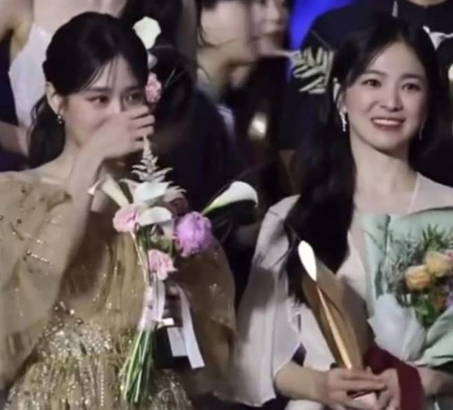 시상식 후, 두 배우는 단체 사진 촬영을 앞두고 서로에게 축하 인사를 건네며 따뜻한 순간을 연출했는데, 이때 송혜교가 박은빈에게 짧게 한 마디를 건넸는데, 입모양을 읽어보면