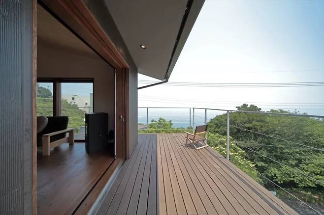 이곳에서는 바다를 바라보며 바베큐를 하거나 커피를 마시며 고요한 시간을 보낼 수 있습니다. 선상 덱 느낌으로 설계된 이 공간은 마치 바다 위에 떠 있는 듯한 착각을 불러일으킵니다.