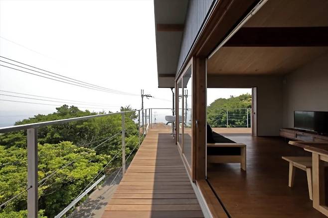 오사카 만을 조망할 수 있는 언덕 위에, 상상 이상의 경관을 선사하는 세컨드 하우스가 지어졌습니다. 이 집은 단순히 취미인 낚시를 즐기기 위한 공간을 넘어, 독창적인 주거 경험을 제공합니다.