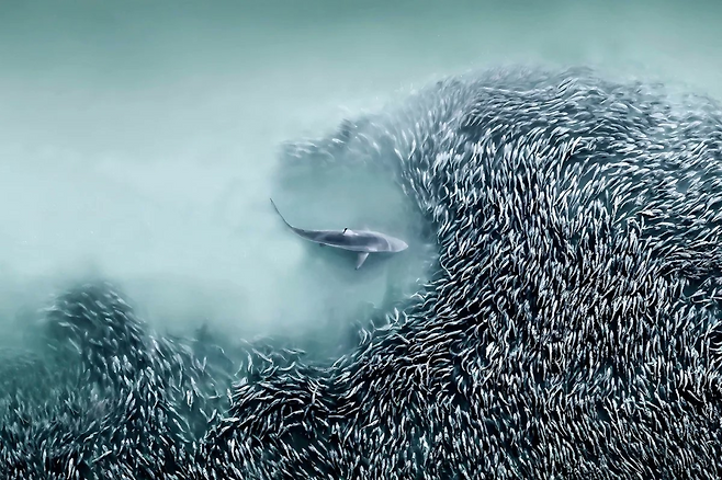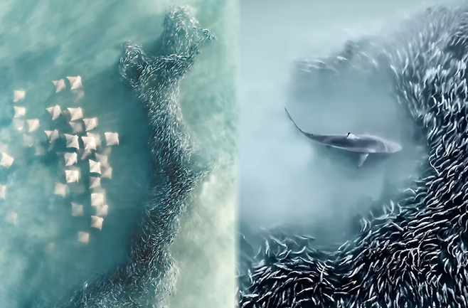 그녀의 작품은 단순히 아름답지 않았다. 침묵하고 있는 바다 생명체와 하늘 위의 관찰자가 교차하는 순간의 떨림이 사진 전체에 스며 있었다.