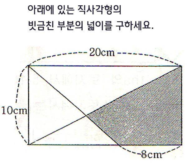 직사각형의 빗금친 부분의 넓이를 구하세요