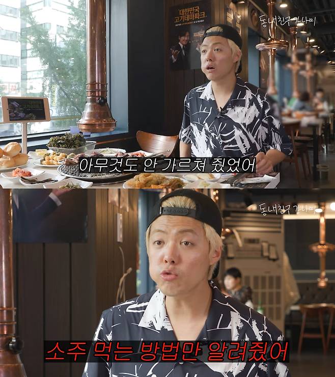 자신이 데뷔할 때는 소속사에서 아무것도 가르쳐주지 않았다고 고백한 그. 한글을 안 가르쳐줬냐는 스태프의 질문에 돌아온 대답은 놀랍게도 '소주 먹는 법'만 배웠다고 합니다.
