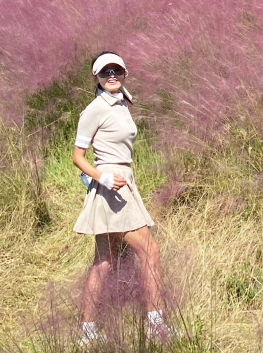 화사한 햇살을 머금은 골프웨어 차림의 그녀는 내추럴하면서도 고급스러운 분위기를 풍기며 단박에 시선을 사로잡는다.