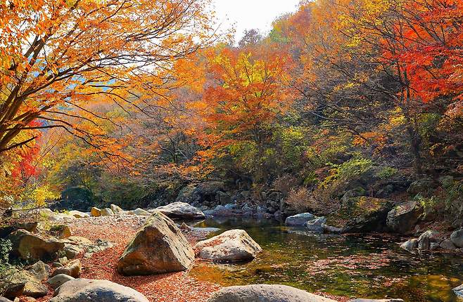 특히 표고막터를 지나 삼홍소에 닿는 구간은 피아골 단풍길의 백미로 꼽힙니다.