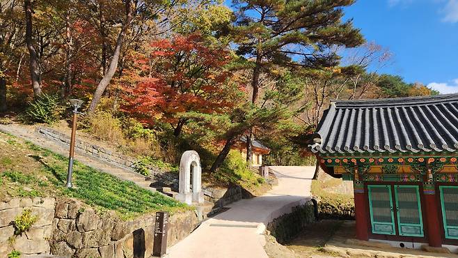 삼홍소에 서면, 세 가지 붉음이 한데 어우러져 가을의 절정을 온몸으로 느낄 수 있습니다.