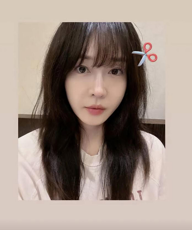 공개된 사진 속 그녀는 앞머리를 낸 새로운 헤어스타일로 카메라를 응시하고 있다. 그녀는 44세 나이가 믿기지 않을 만큼 맑고 투명한 피부와 인형 같은 미모를 뽐냈다.