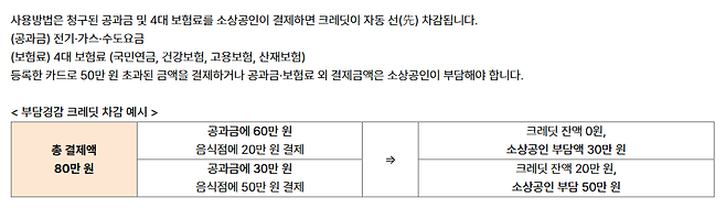 ▪️전기요금: 한국전력공사에 납부하는 사업장용 전기요금에 사용 가능합니다. 카드결제나 자동이체 모두 적용되며, 카드 등록만 제대로 되어 있으면 자동 차감됩니다.