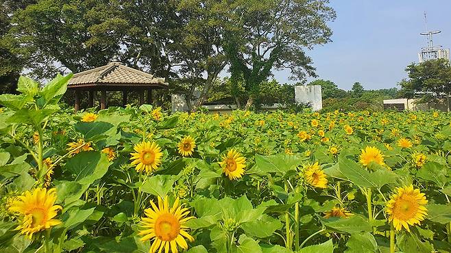7월 말에서 9월 초까지, 항파두리 유적지는 또 다른 얼굴을 가진다. 바로 유적지를 따라 펼쳐진 해바라기 밭 덕분이다.