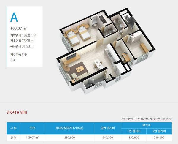 - 홈페이지에 보면 관리비와 식비를 포함해서 60만 원(가장 큰 방 기준) 정도다. 어떤 수준인가.