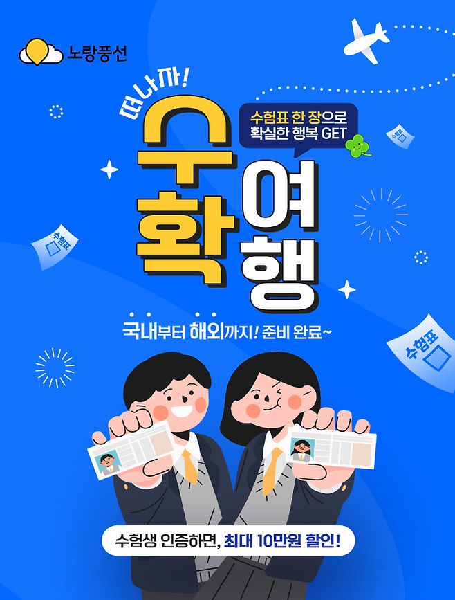 수험생활을 끝낸 여러분, 노랑풍선과 함께 여행을 떠나보세요! 진정한 쉼과 새로운 경험이 여러분을 기다리고 있습니다.