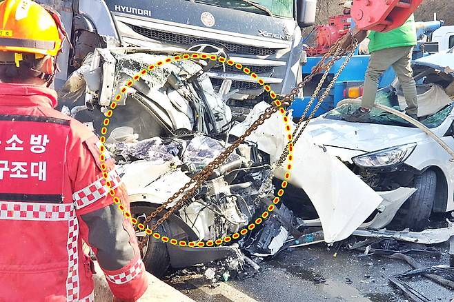 강한 충돌로 아내와 딸이 타 있던 뒷좌석의 내부 폭은 8cm까지 찌그러졌다. 그럼에도 A씨의 아내는 막내딸이 구조되는 모습을 보고서야 세상을 떠난 것으로 전해졌다. A씨는 분노를 감추지 못했다. "내 아내를 구조한 것은 사고가 발생한 지 1시간 20분 만이었다. 그때까지 막내딸을 안고 있었다더라"라고 말했다.