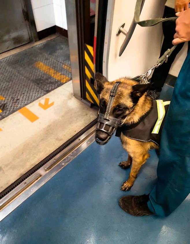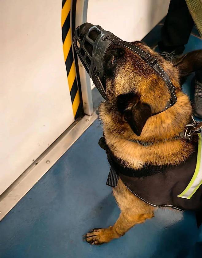 곧바로 휴대폰을 내려놓고 경찰견의 모습을 연신 카메라에 담기 시작했습니다. 이 특별한 순간을 놓치고 싶지 않았기 때문입니다.