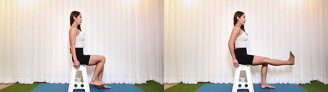 - 무릎을 폈다 접었다 반복해 줍니다.