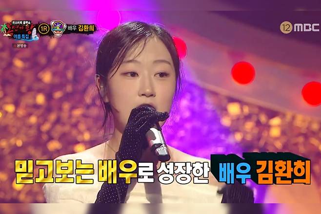 지난 21일 방송된 MBC ‘미스터리 음악쇼 복면가왕’에서 김환희는 복면 가수 ‘오버 더 레인보우’로 출연했습니다.